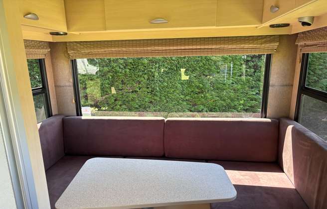 On slower days, you can even leave the bed made up, while still enjoying full use of the living space. The passenger seating directly behind the driver includes four belted seats, making it easy to keep an eye on the kids while on the road.
